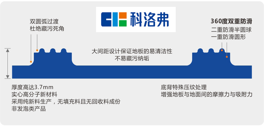 科洛弗多功能防滑地板采用多重物理防滑設(shè)計,卷材成品免膠安裝,既可防水又可以防油,是學(xué)校食堂廚房防滑地面的首選。安裝快速且防滑效果顯著。