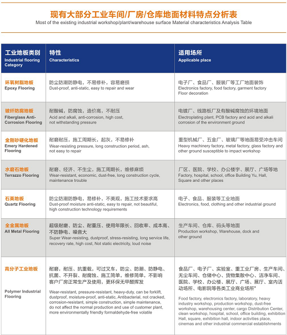 在此次展會上出現了一種顛覆傳統工業地坪的新型工業地面材料---高分子工業地板,此地板由湖南峰暢建材有限公司(科洛弗品牌)投入研發并在取得國家專利后生產面市,目前已在眾多知名上市企業生產廠房地面投入使用,如:得潤電子、興發集團、艾華集團、長高集團、千山藥機、科力遠、福耀玻璃、中糧集團、蒙牛乳業等。據科洛弗市場部負責人楊經理介紹,科洛弗高分子工業地板之所以受到眾多知名企業青睞,是因為高分子工業地板具備了傳統工業地坪材料所無法具備的眾多優點,主要突出在環保、耐磨、防腐蝕、防靜電、抗菌、易安裝易維修等方面的優勢,與傳統的環氧地坪具體區別如下: